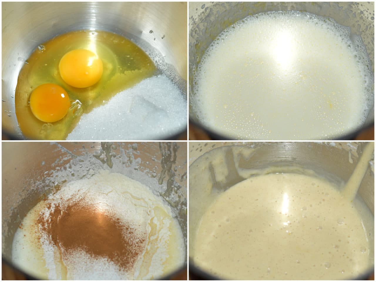 Montate le uova con lo zucchero fino a renderle chiare e spumose, quindi incorporate l'olio e il latte e infine anche farina, lievito e cannella (1 cucchiaino) setacciati.