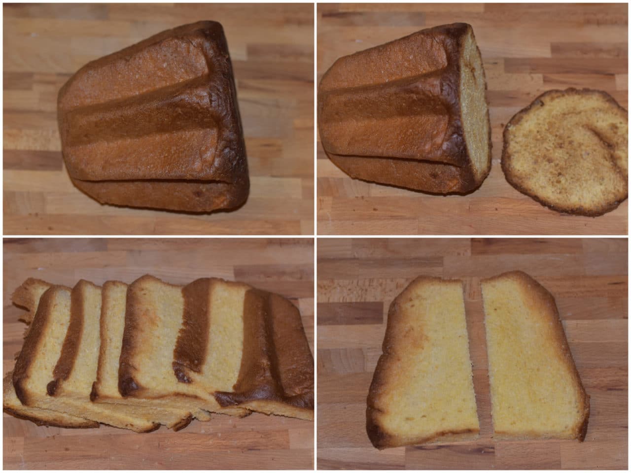 Eliminate il fondo dal pandoro, poi tagliatelo per il lungo a fette sottili.