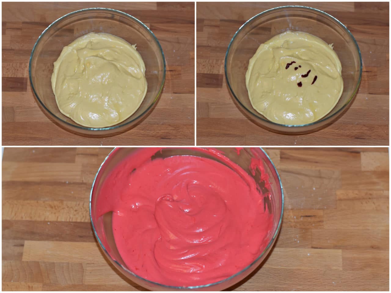 Dividete il composto in 2 ciotole e in una delle 2 unite il colorante alimentare.