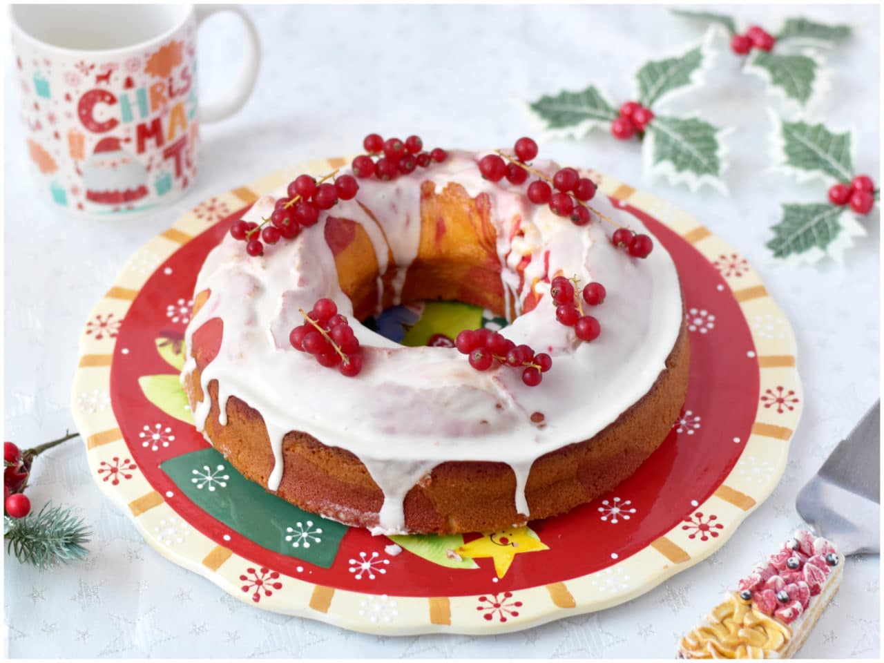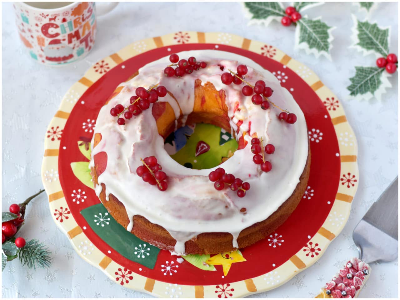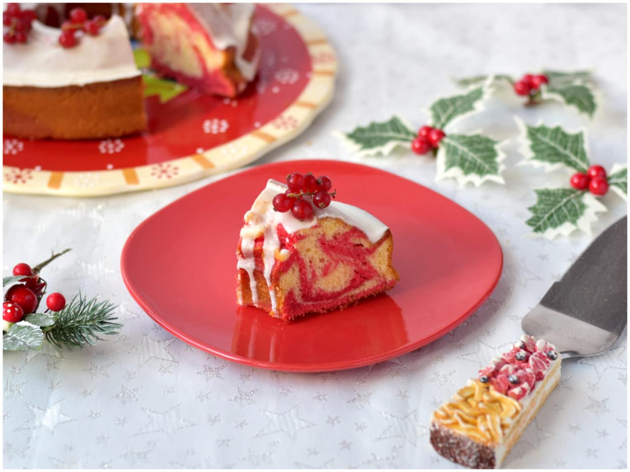 Chi non ama una bella red velvet? Ecco, se volete renderla ancora più natalizia potete provare con questa fantastica ciambella red velvet marmorizzata! Una ciambella bicolore, soffice soffice e deliziosamente scenografica grazie al colorante, alla glassa e al decoro di ribes... io la trovo davvero perfetta per il periodo delle feste, che dite?
