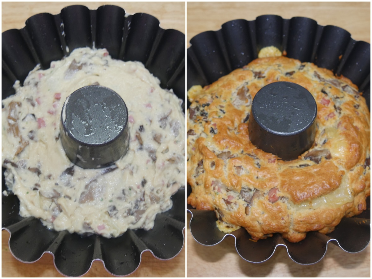 La ciambella salata ai funghi è pronta, lasciatela riposare per almeno 10 minuti prima di servirla.