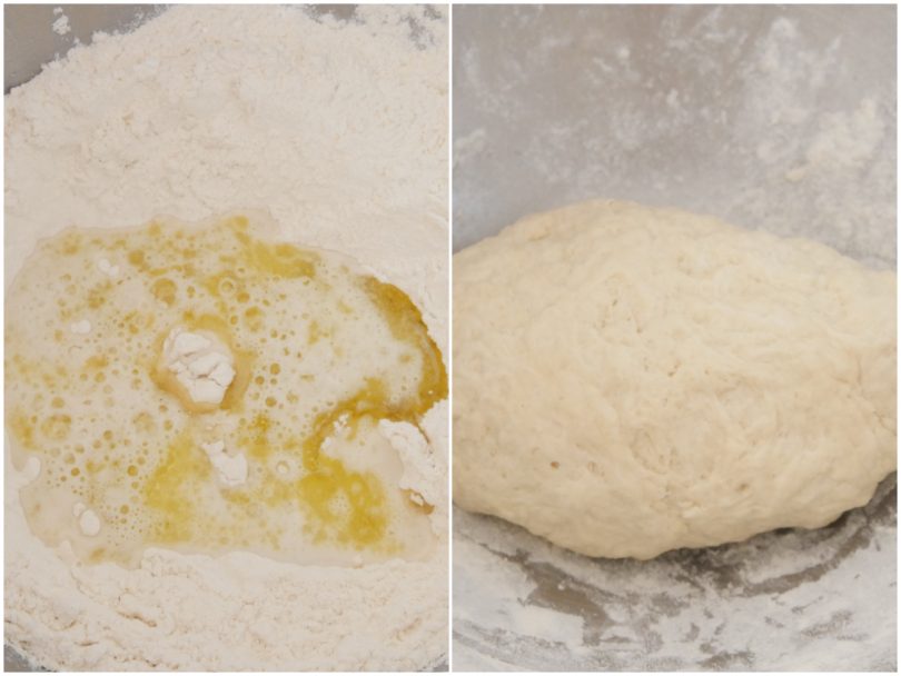 Innanzitutto mettete in una ciotola farina, zucchero, sale, lievito, olio e acqua e iniziate a impastare.