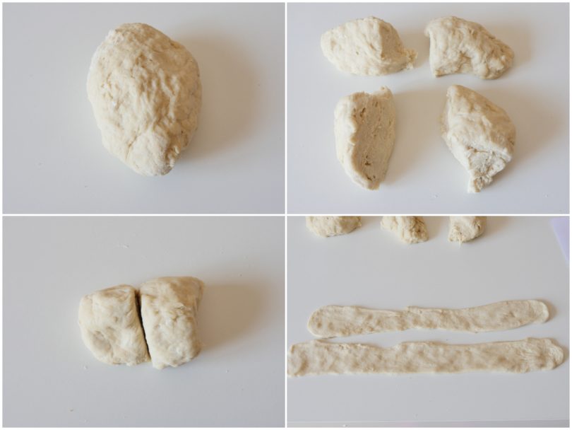Dopo il riposo, riprendete il panetto e dividetelo in 4 parti uguali.