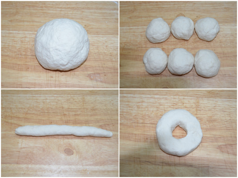 Dividetelo in 6 porzioni uguali, quindi ricavate dei filoncini (di circa 20-25 cm di lunghezza) e unitene le estremità, sigillandole bene, per ricavare le ciambelle.