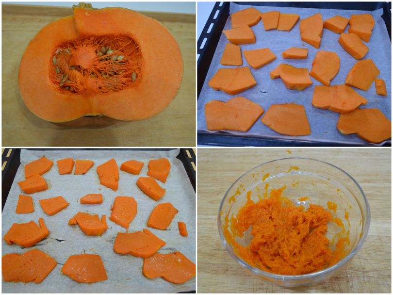Innanzitutto pulite la zucca, quindi cuocetela in forno ventilato preriscaldato a 200°C per circa 20 minuti.