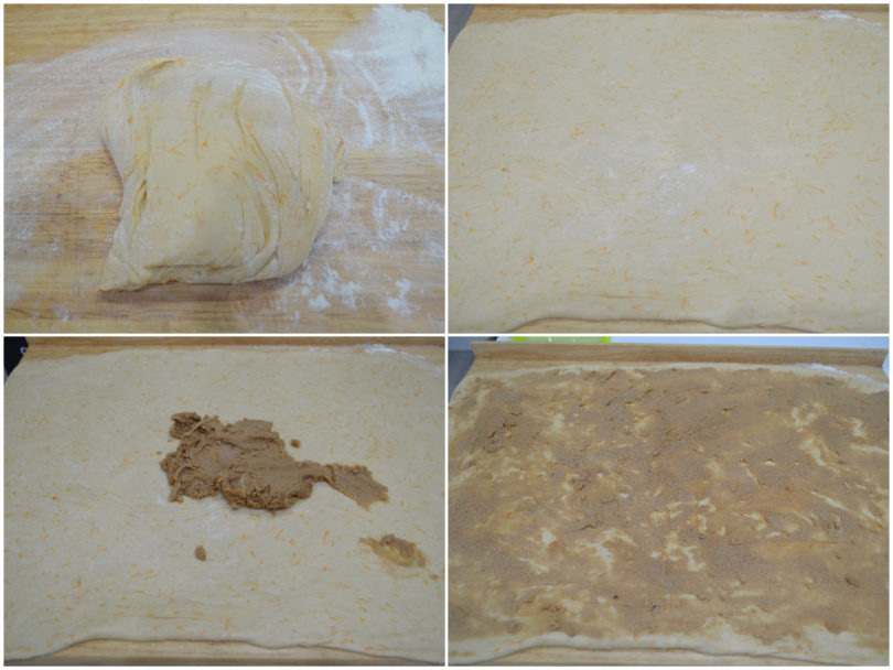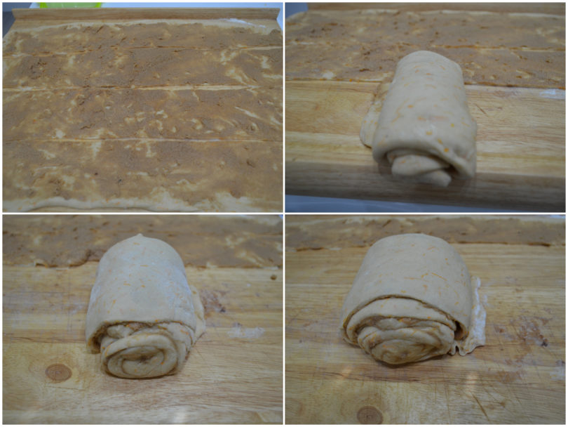 Nel frattempo preparate la farcia, lavorando insieme zucchero, sale e cannella con il burro ammorbidito.