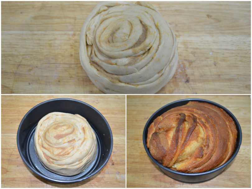 Trasferite la girella in una teglia leggermente imburrata, coprite con pellicola e lasciate lievitare di nuovo per circa 1 ora o fino al raddoppio.