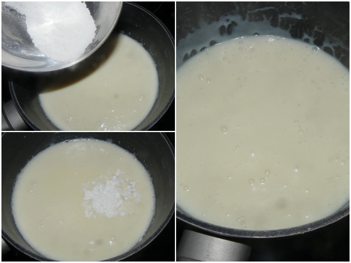 Una volta sciolto il cioccolato, incorporate anche la maizena setacciata, mescolando continuamente con una frusta, e continuate a cuocere a fiamma bassa mescolando fino ad ottenere la densità che preferite.