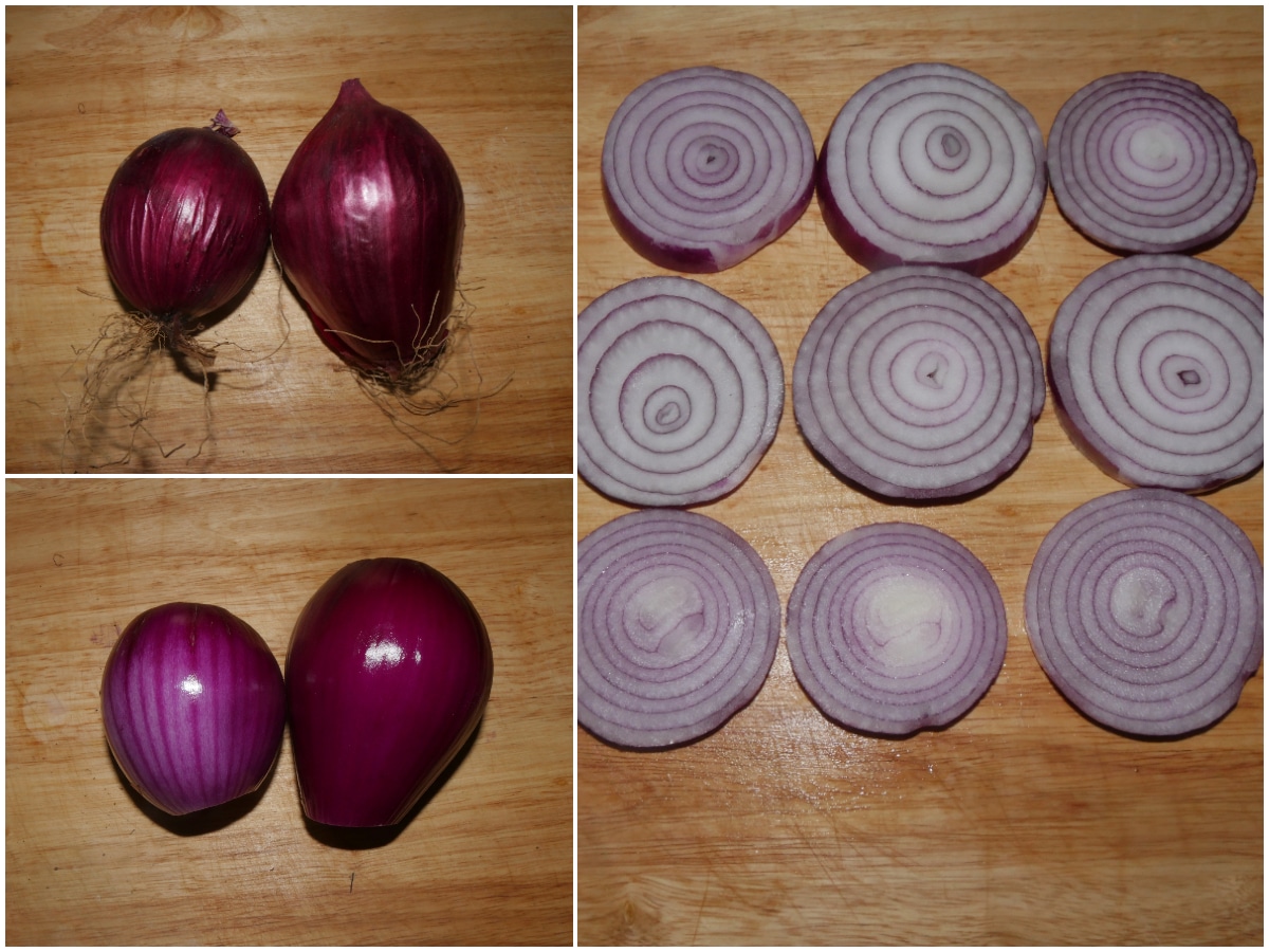 Innanzitutto sbucciate le cipolle, lavatele bene e tagliatele a fette spesse circa 1 cm, senza separare gli anelli concentrici tra loro.
