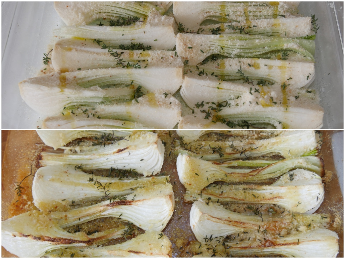 Disponeteli in una pirofila adatta alla cottura in forno e conditeli con sale, timo, pangrattato, parmigiano e olio.