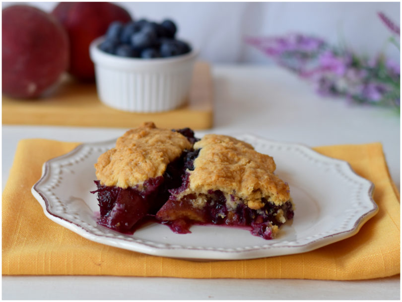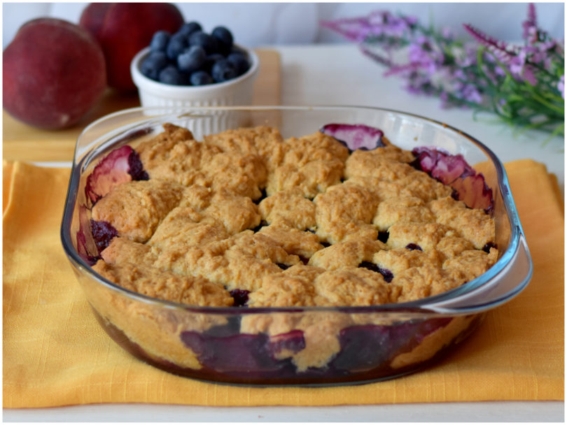 Il cobbler di pesche e mirtilli è pronto, non vi resta che servirlo.