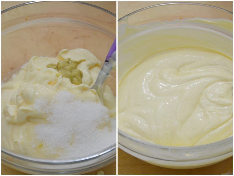 In una ciotola amalgamate la maionese con la mostarda, l’aceto e lo zucchero.