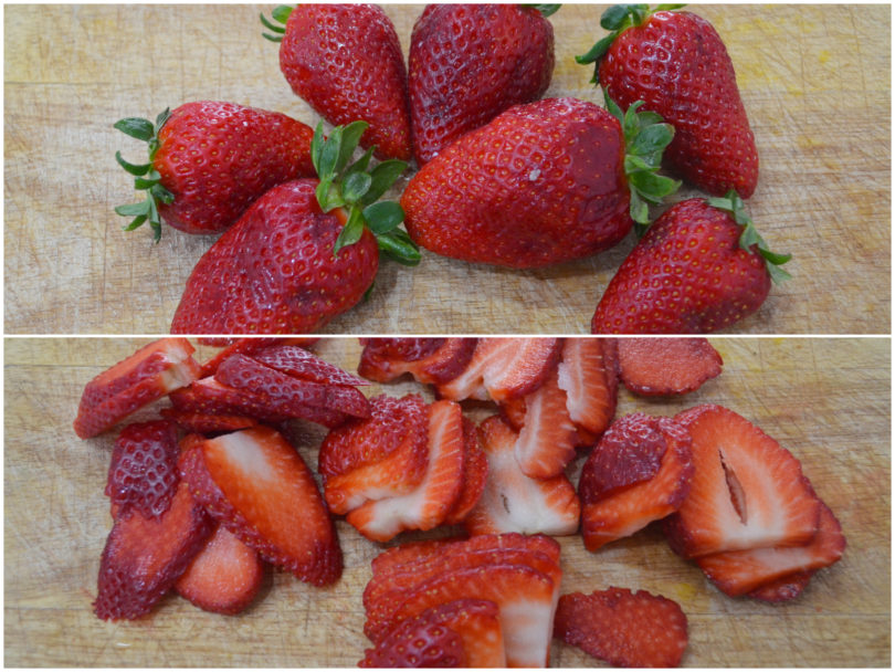 Ricordatevi di lasciare da parte un pochino di crema e qualche fettina di fragole per la decorazione.