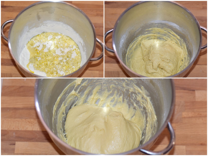 Versate quindi gli ingredienti liquidi su quelli secchi e lavorate fino ad ottenere un impasto incordato.