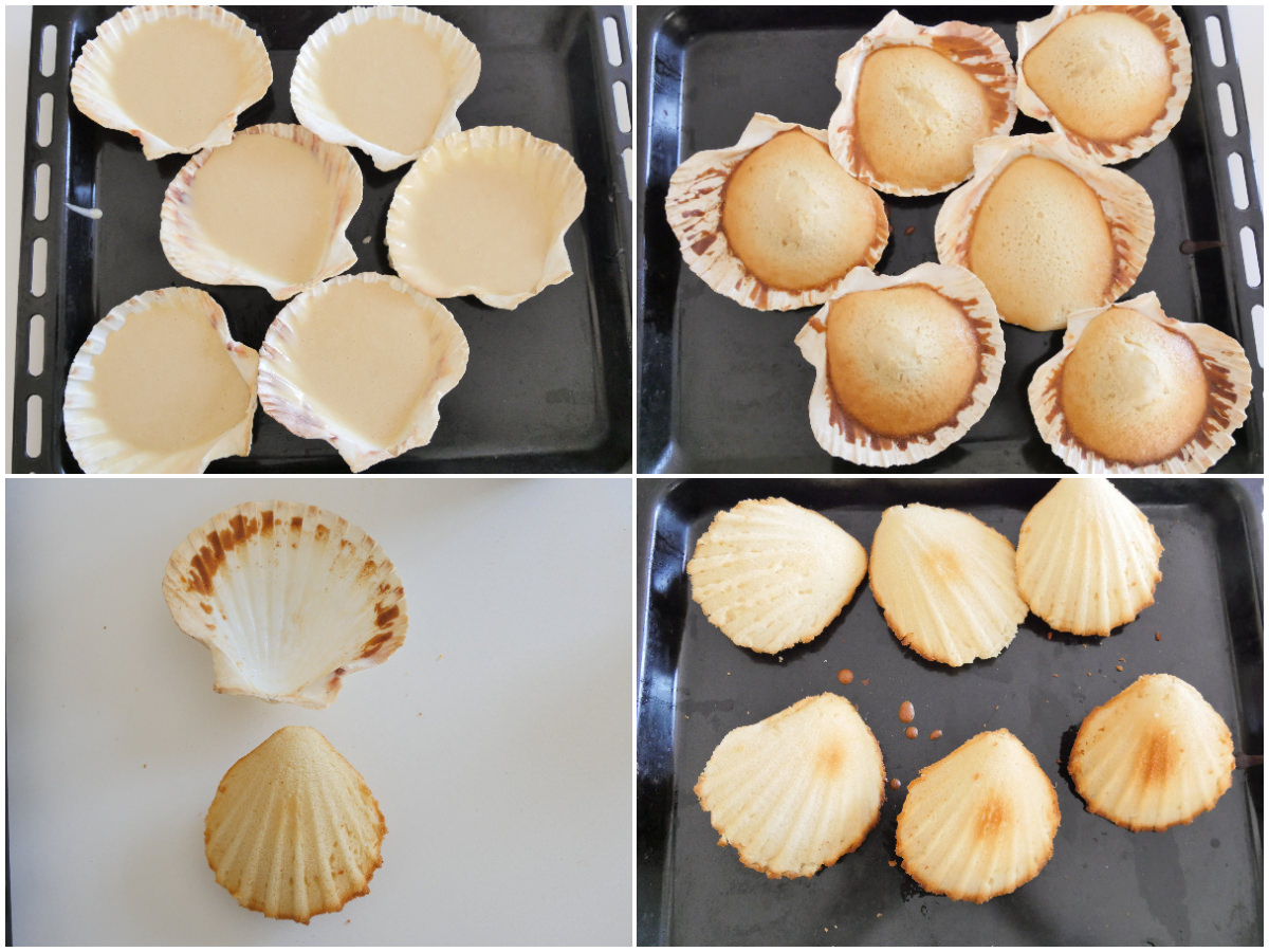 Distribuite il composto in 8 stampini a conchiglia ben imburrati e cuocete per circa 20 minuti in forno ventilato preriscaldato a 180°C, quindi fate raffreddare.