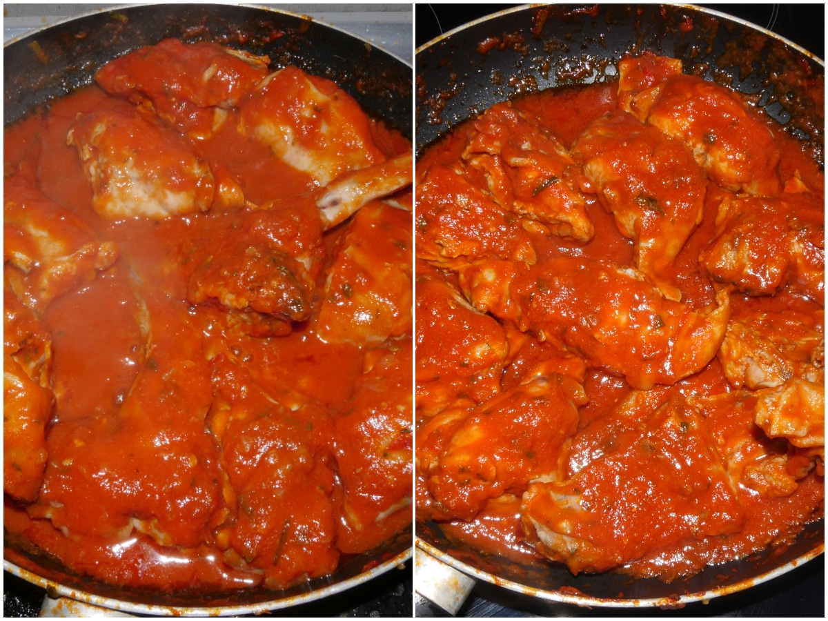 Dovrete cuocere per circa 30-40 minuti, quindi togliete il coperchio, aggiustate di sale e lasciate addensare il sugo.
