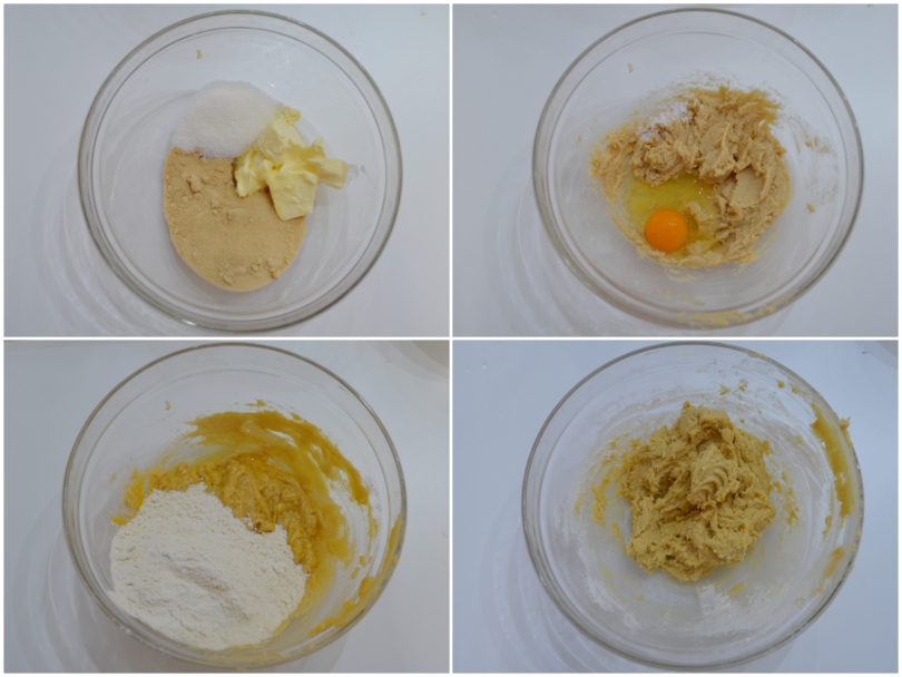 Iniziate quindi a preparare i biscotti: lavorate il burro con i due tipi di zucchero fino ad ottenere una crema.
