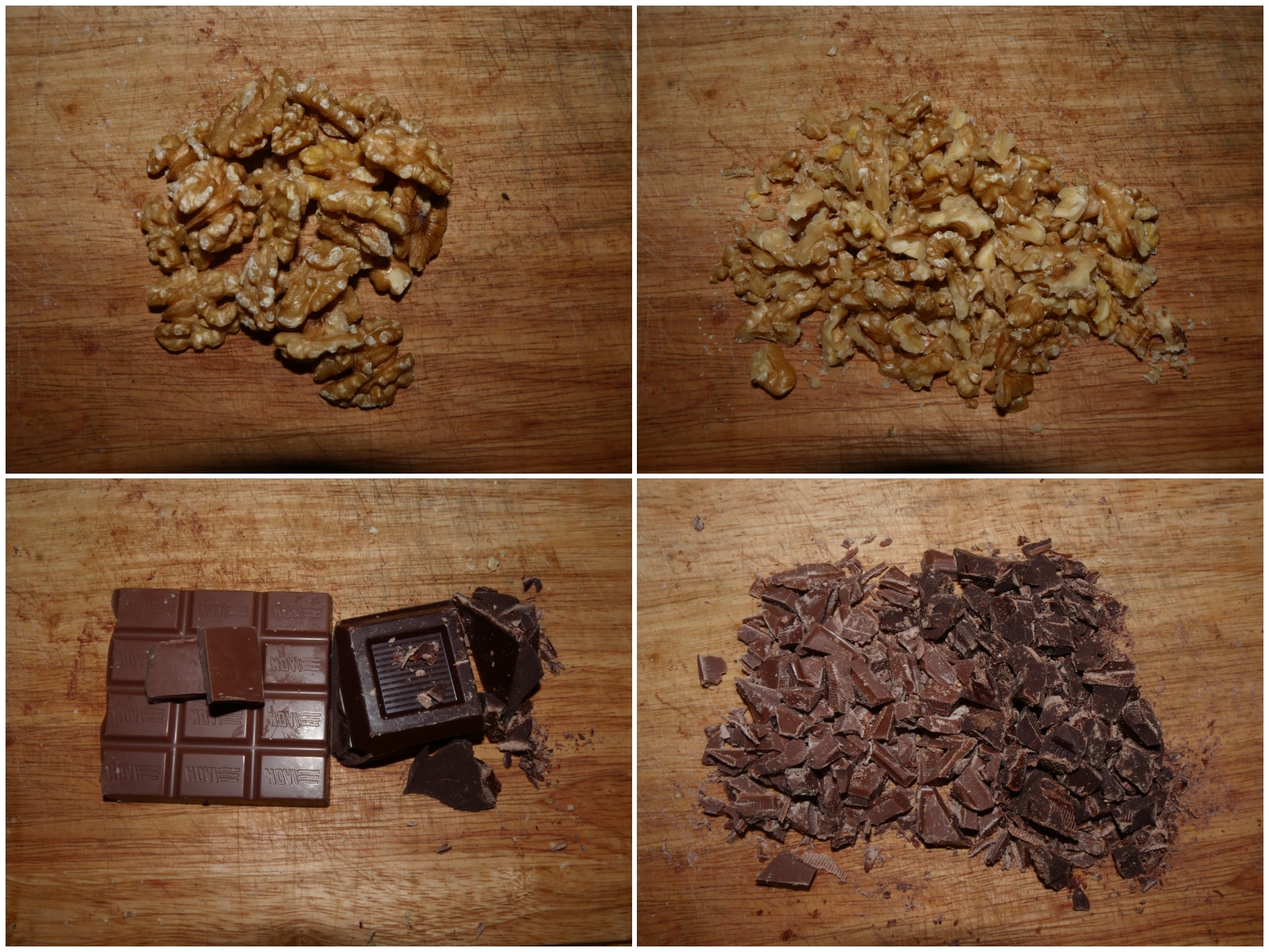 Tritate le noci ed i due tipi di cioccolato
