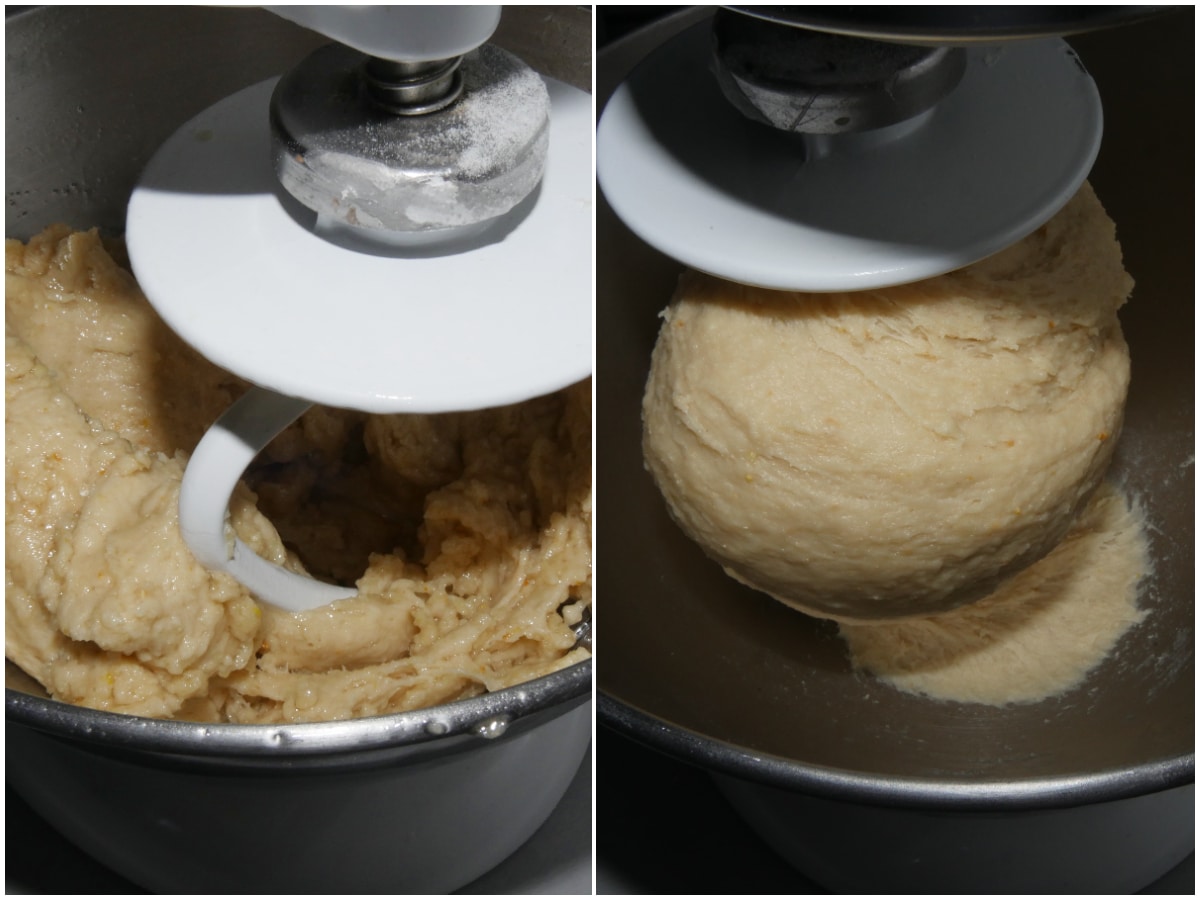 Una volta aggiunto tutto l'olio continuate a lavorare per almeno 10 minuti, fino a far incordare l'impasto.