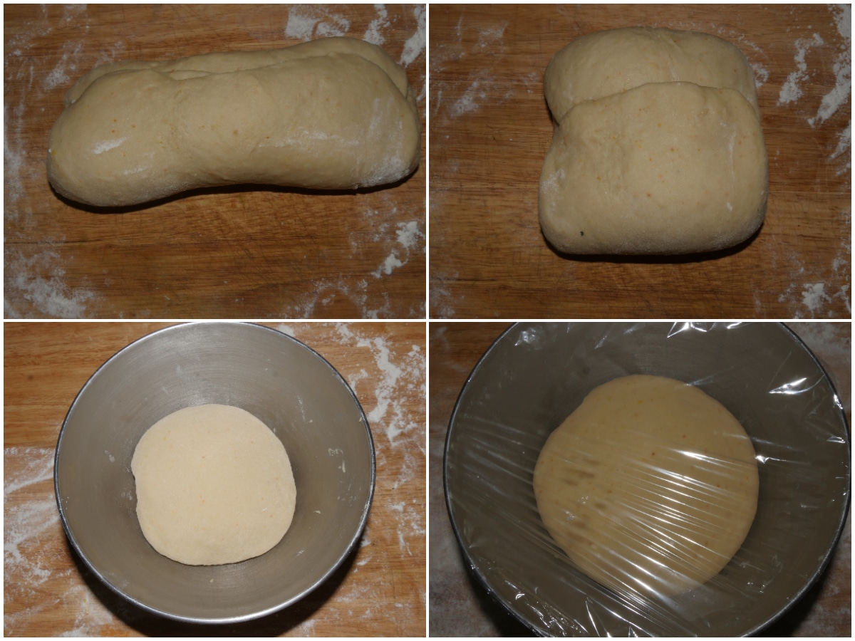 Una volta ottenuto un panetto omogeneo, trasferitelo sul piano di lavoro leggermente infarinato, appiattitelo con le mani ed effettuate un giro di pieghe (qui la guida per farlo al meglio).