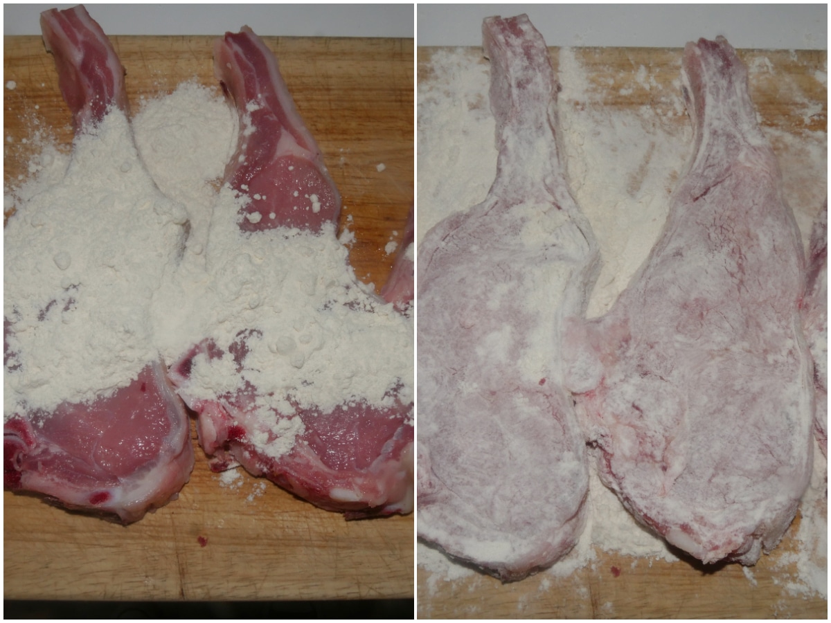 Infarinate per bene la carne, coprendo tutta la superficie.