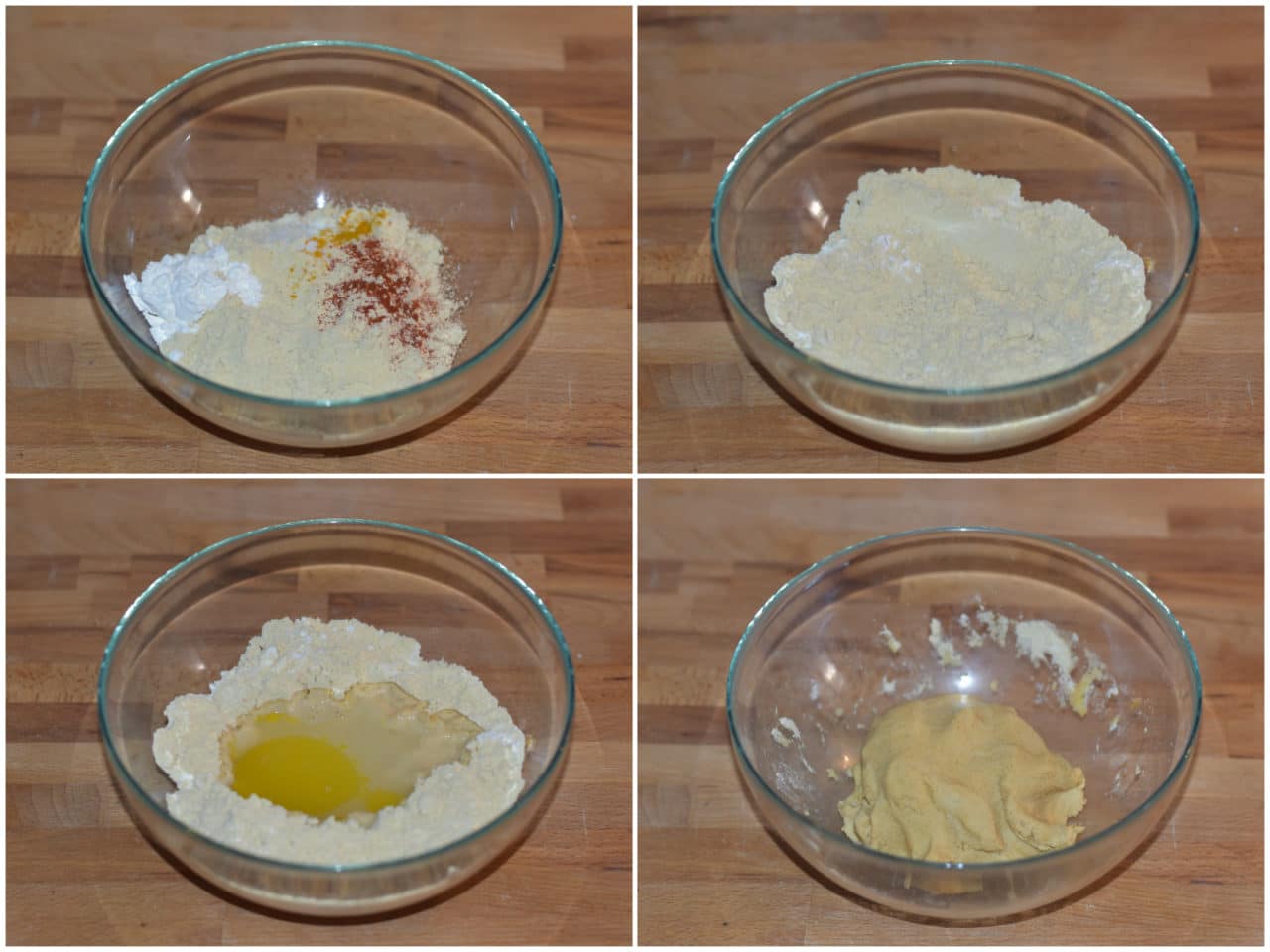 Mettete in una ciotola la farina di ceci insieme con maizena, sale, paprica e cumino.