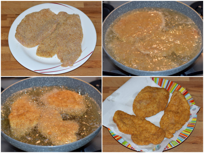 Friggete le cotolette in olio già caldo, facendole dorare da entrambi i lati, poi scolatele su carta da cucina.