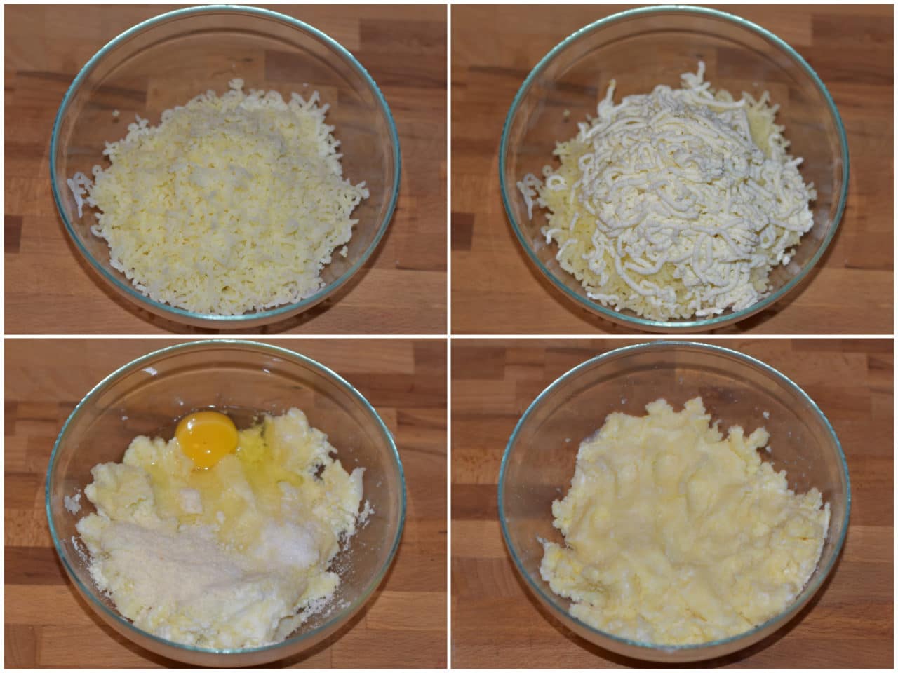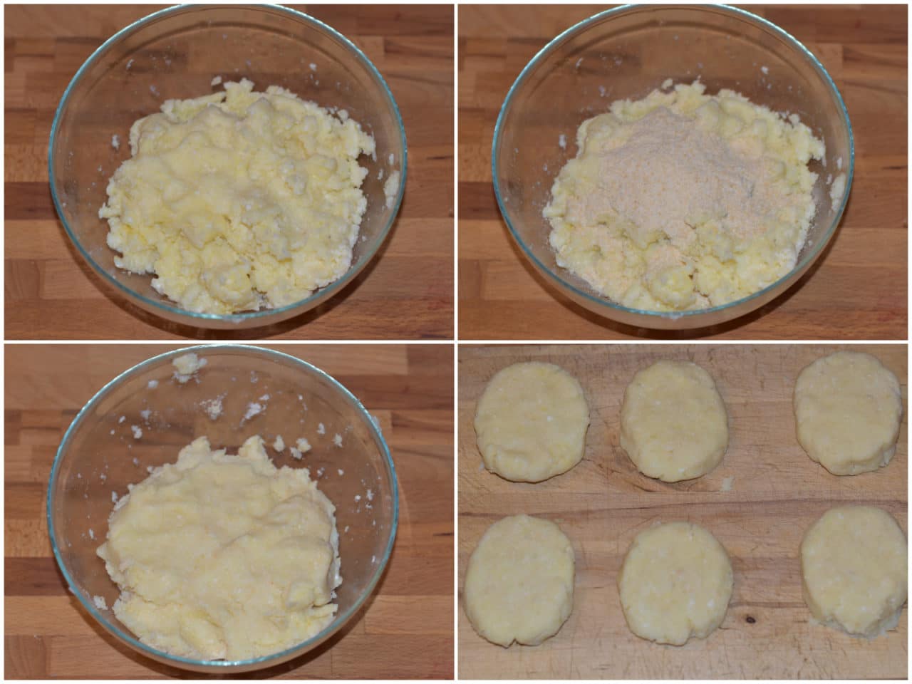 Schiacciatele finché sono ancora morbide e incorporateci dentro ricotta, 1 uovo, sale e grana.