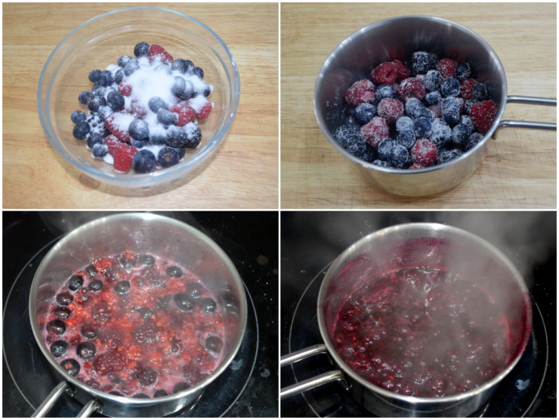 Preparate innanzitutto il succo: mettete gli ingredienti in un pentolino, portate a bollore e fate cuocere per 10 minuti.