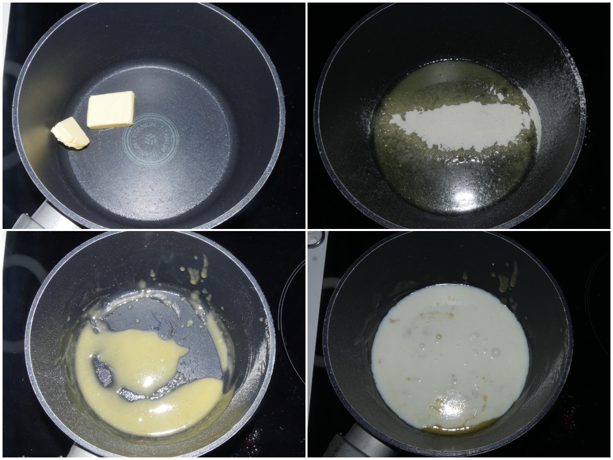 Fate sciogliere il burro in un pentolino antiaderente, quindi aggiungete la farina e mescolate bene, infine incorporate anche il latte.