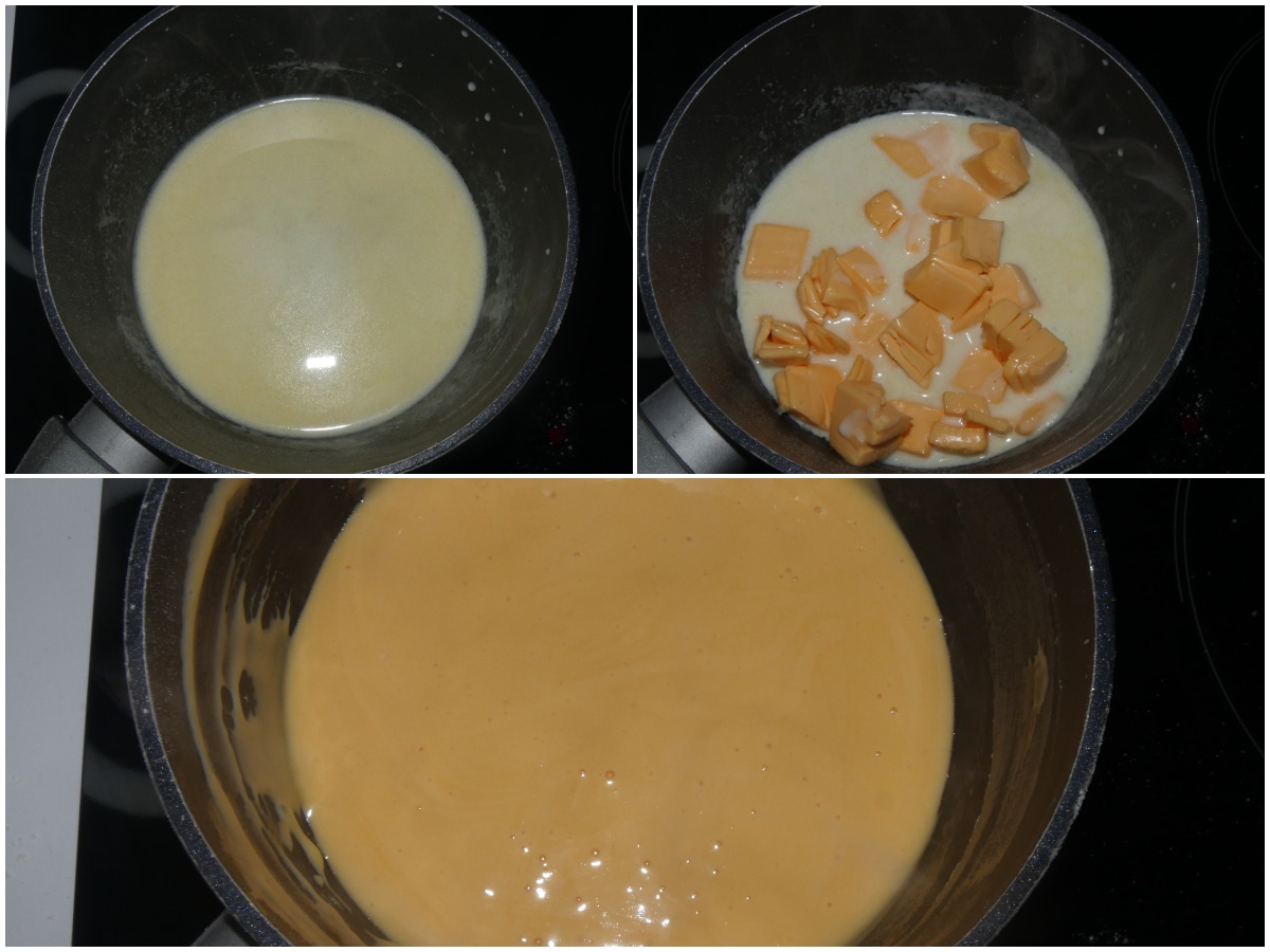 Fate cuocere finché non inizia ad addensarsi, poi aggiungete anche il cheddar spezzettato e mescolate fino a farlo sciogliere del tutto.