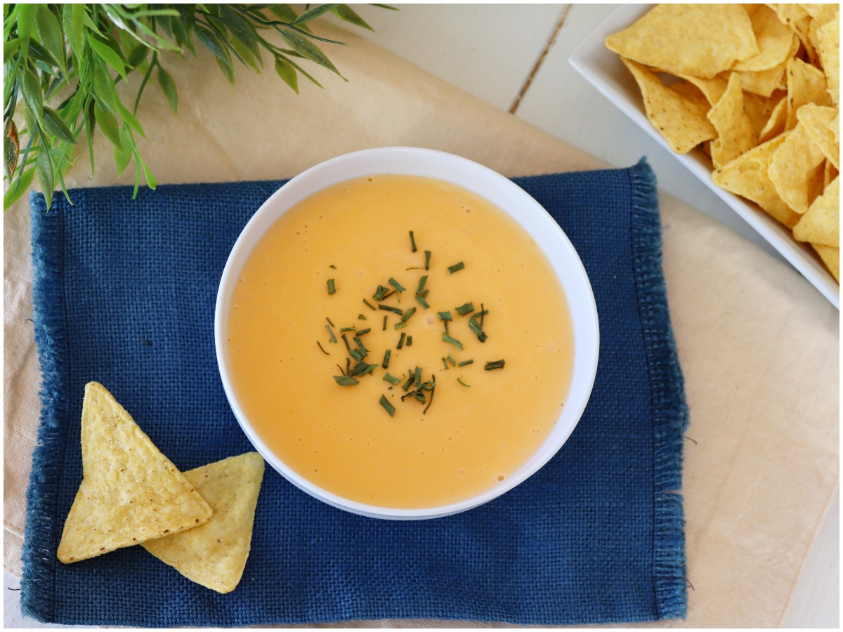 La crema al cheddar è pronta, servitela calda, tiepida o fredda, magari con erba cipollina o paprica, per accompagnare nachos o patatine fritte.