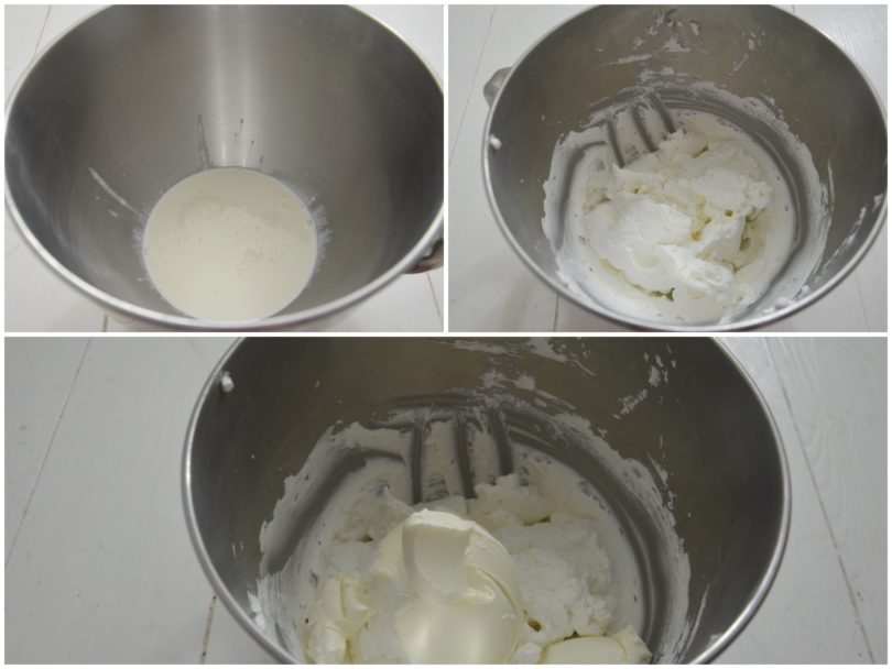 Montate la panna ben fredda di frigo, quindi lavorate anche il mascarpone con le fruste per ammorbidirlo e unite i due composti.