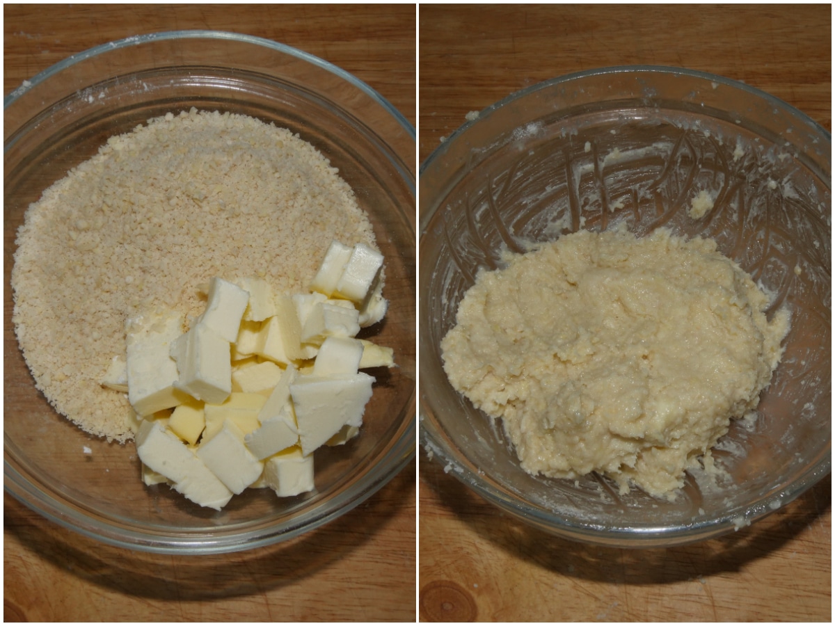 Nel frattempo lavorate il burro con zucchero a velo e farina di mandorle fino ad ottenere un composto omogeneo.