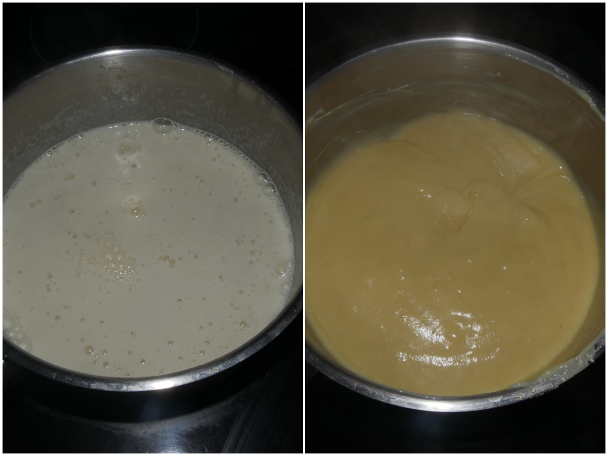 Trasferite il tutto in un pentolino e cuocete a fiamma bassa, mescolando continuamente, finché la crema non si sarà addensata.