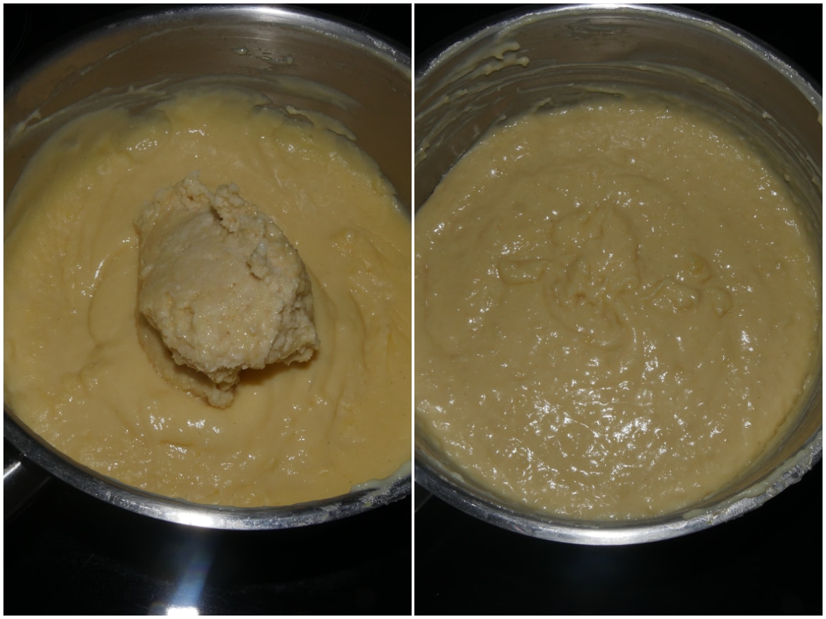 Una volta pronta la crema, spegnete il fuoco e incorporate il composto di mandorle.