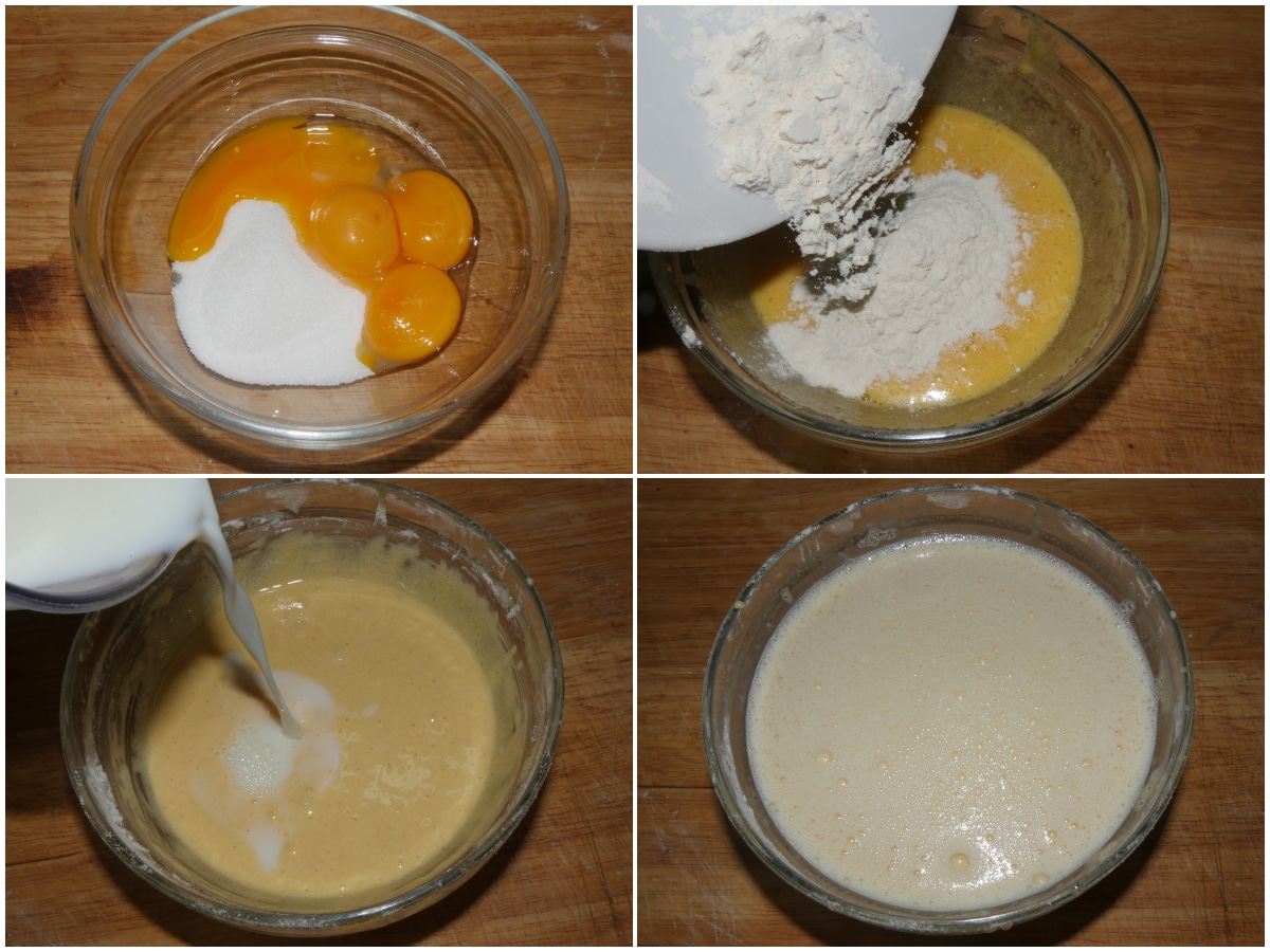 Sbattete i tuorli con zucchero e vaniglia, quindi incorporate prima la farina e poi il latte, poco per volta.