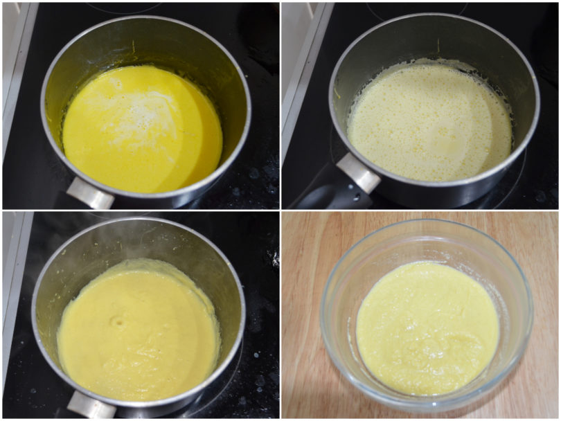 Continuate la cottura fino a raggiungere gli 82° se avete un termometro da cucina, o finché, immergendo un cucchiaino nella crema, tirandolo fuori non risulterà velato di crema.