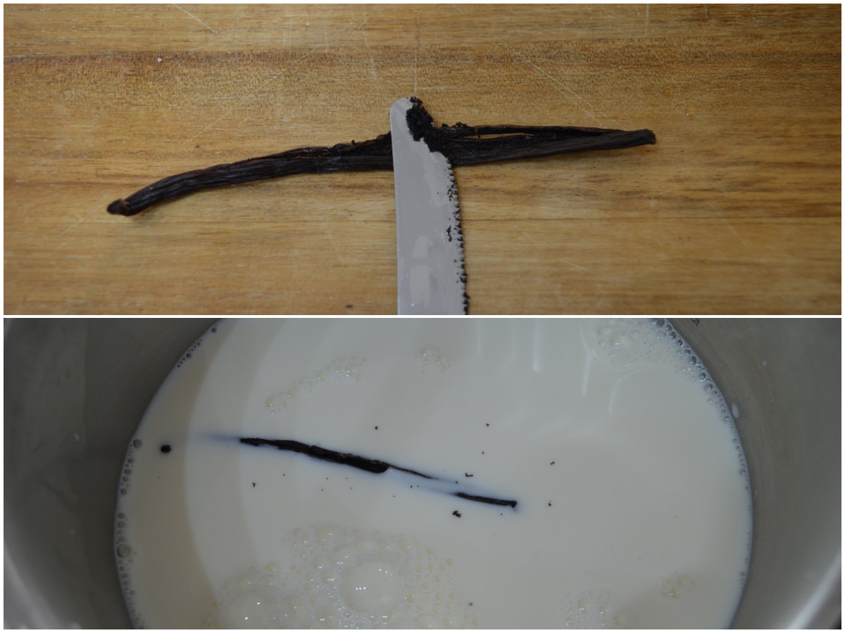 Mettete baccello e semini in un pentolino con il latte e portate quasi a ebollizione.