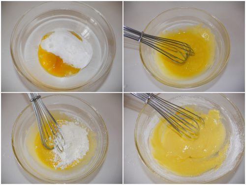 In una ciotola, montate i tuorli con lo zucchero, quindi incorporate anche la maizena.