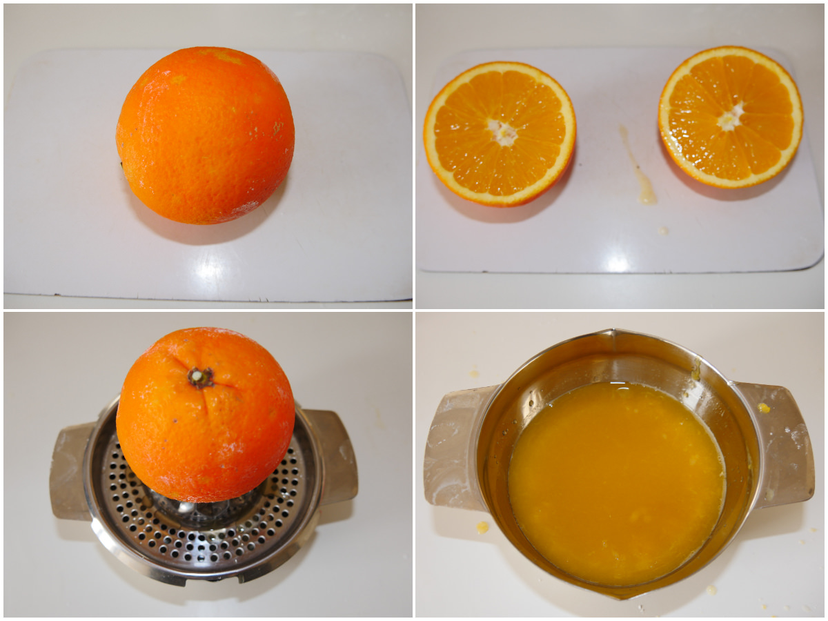 Innanzitutto spremete le arance per ricavarne il succo.