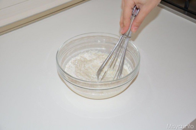 Ponete in una ciotola dai bordi alti la farina e un pizzico di sale, iniziate a versare il latte a filo e mescolare il composto fino a che sarà liscio e senza grumi.