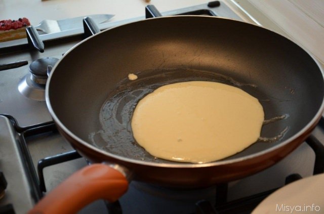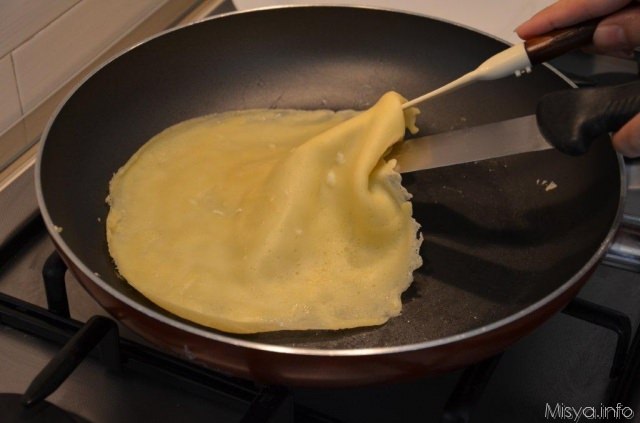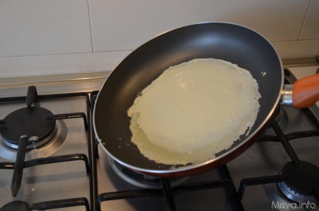 Cuocete la crepe per un minuto quindi giratela dall’altra parte e cuocete ancora un minuto.
