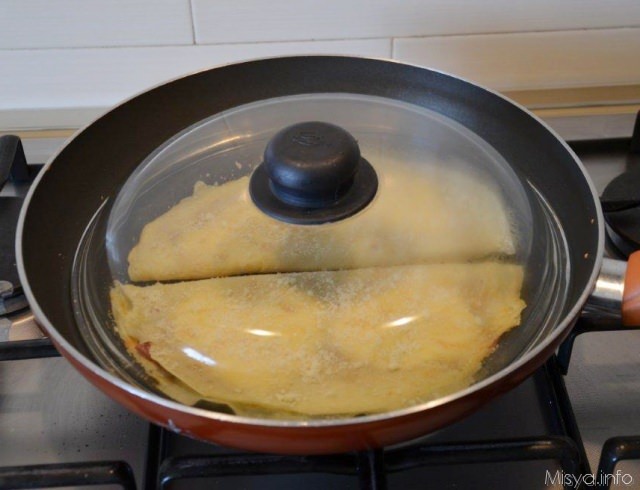 Chiuderle su se stesse e metterle in padella ricoperte con del parmigiano. Coprite con un coperchio e fate cuocere a fiamma bassa per 5 minuti circa o fino a che la provola non si sarà sciolta completamente.