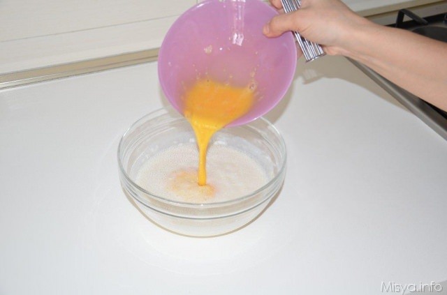 In una ciotola a parte, sbattete le uova e aggiungetele ora alla pastella