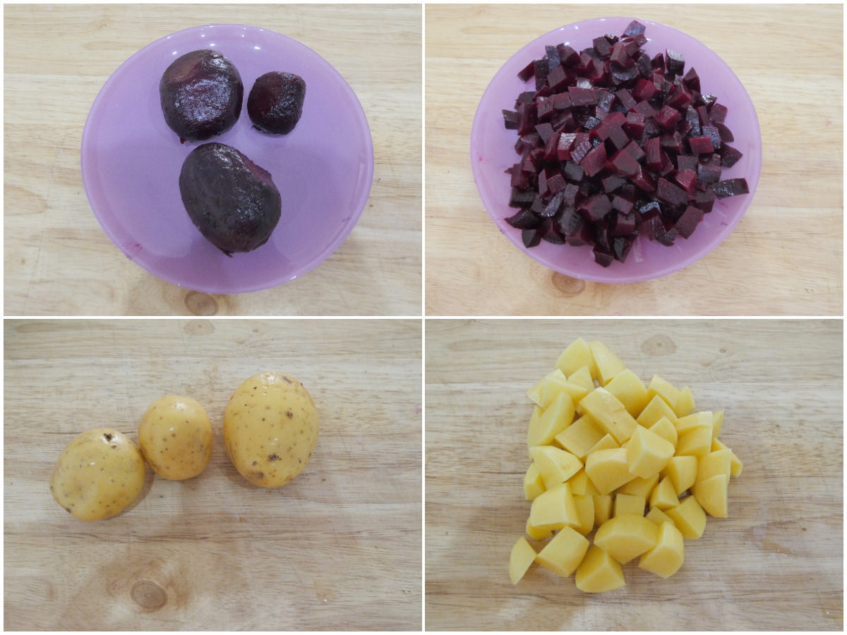 Nel frattempo tagliate a dadini anche le barbabietole, già cotte.