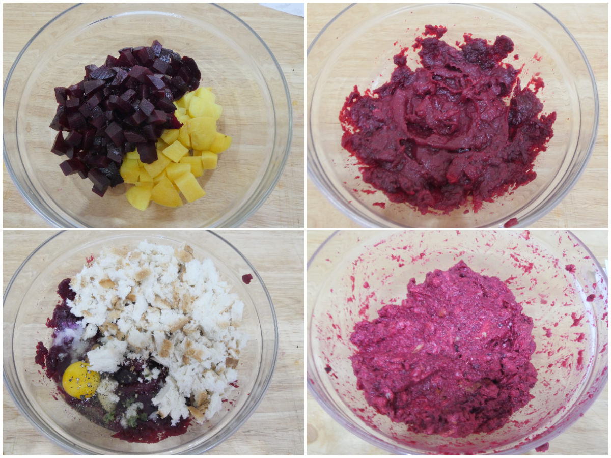 Mettete patate e barbabietole insieme in una ciotola e frullatele con un minipimer (in alternativa, frullatele in un mixer).