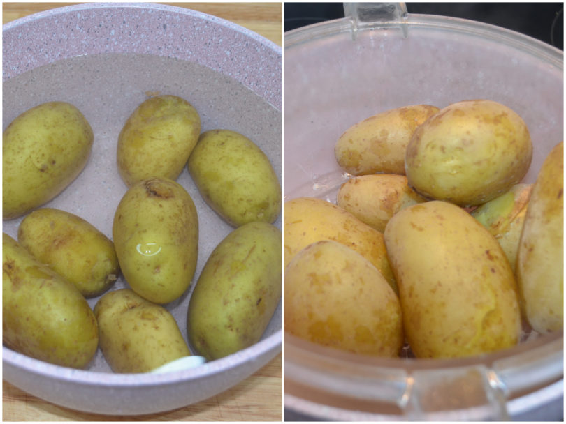Dopo 20-30 minuti dal bollore le patate dovrebbero essere cotte (fate la prova infilzando una patate con una forchetta: se scivola via facilmente, la patata è cotta).