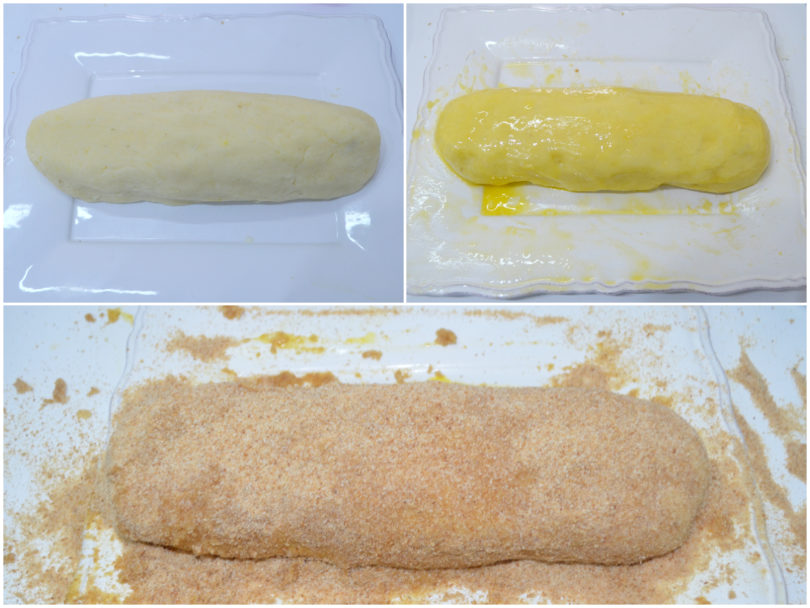 Dividete l'impasto a metà, quindi formate i 2 crocchè giganti, sagomandoli con le mani umide.