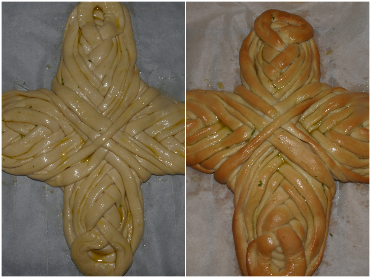 La croce di pane è pronta, lasciatela almeno intiepidire prima di portarla in tavola.